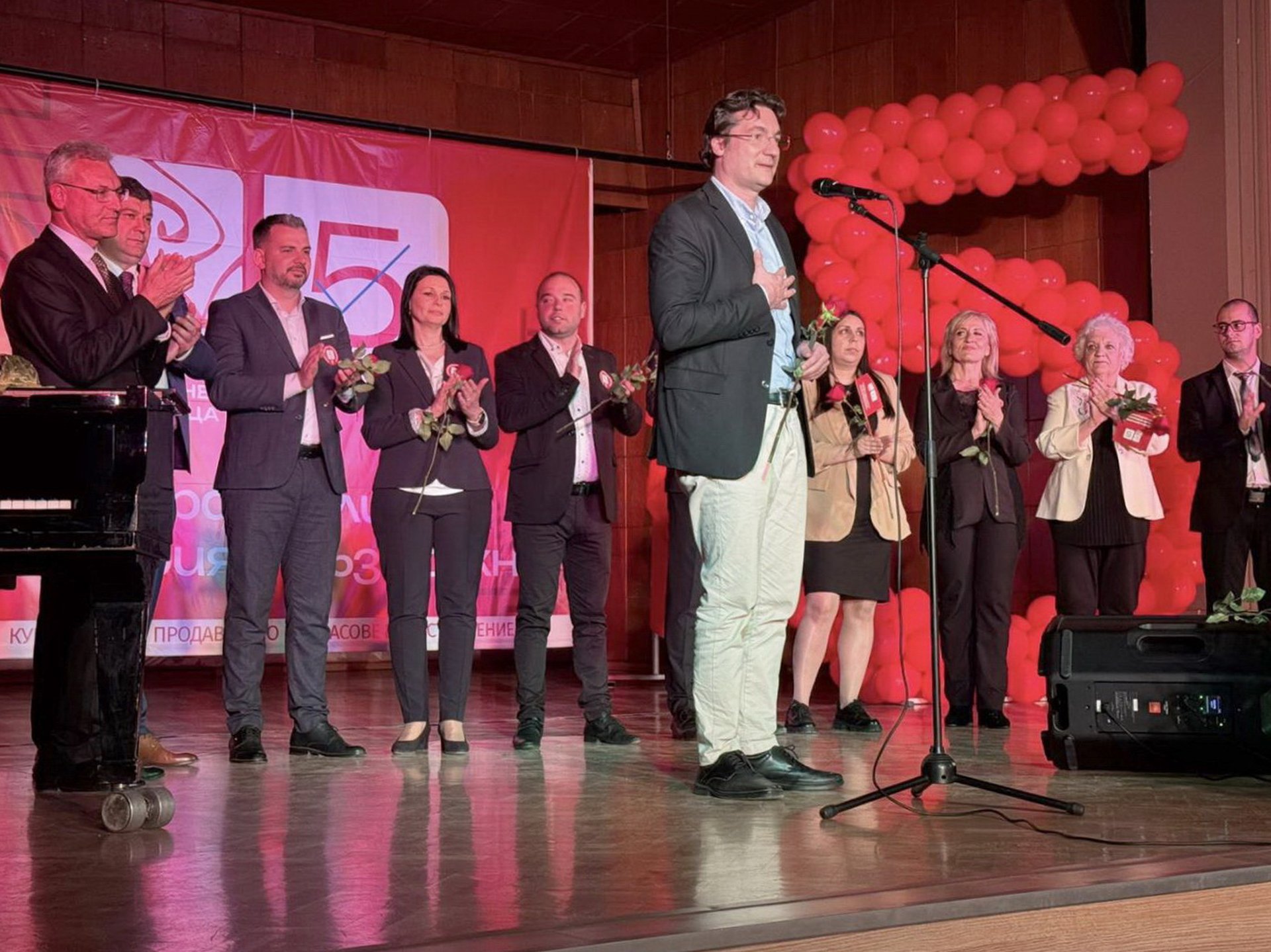 Водачът на шуменската листа на БСП-ОЛ Валери Жаблянов заяви, че от 15 г. България се управлява от десницата, която изповядва проста философия – оцелява този, който може да се конкурира. „Да остане само болницата, за която има пациенти. Ако има възможност утре да се дадат магистрали на концесия, ще ги дадат. Ще построят АМ „Хемус“, но ще ни карат да плащаме, за да пътуваме по нея. Така функционира българският капитализъм“, каза политологът Жаблянов и добави, че политическите сили, някои несъзнателно, тласкат България към капитализма от 19 век. Идеята не е да сменяме едно правителство с друго през шест месеца, а да покажем, че държавата ни може да има и друг път на развитие чрез ценностите на социалистическата партия. „Не може да има прогрес без хуманизъм, без образовано младо поколение. Социалистическата идея дава шанс за развитие на всеки човек, за интелектуалното му израстване, за възможността да реализира себе си и близките си в обществото“, каза Жаблянов.