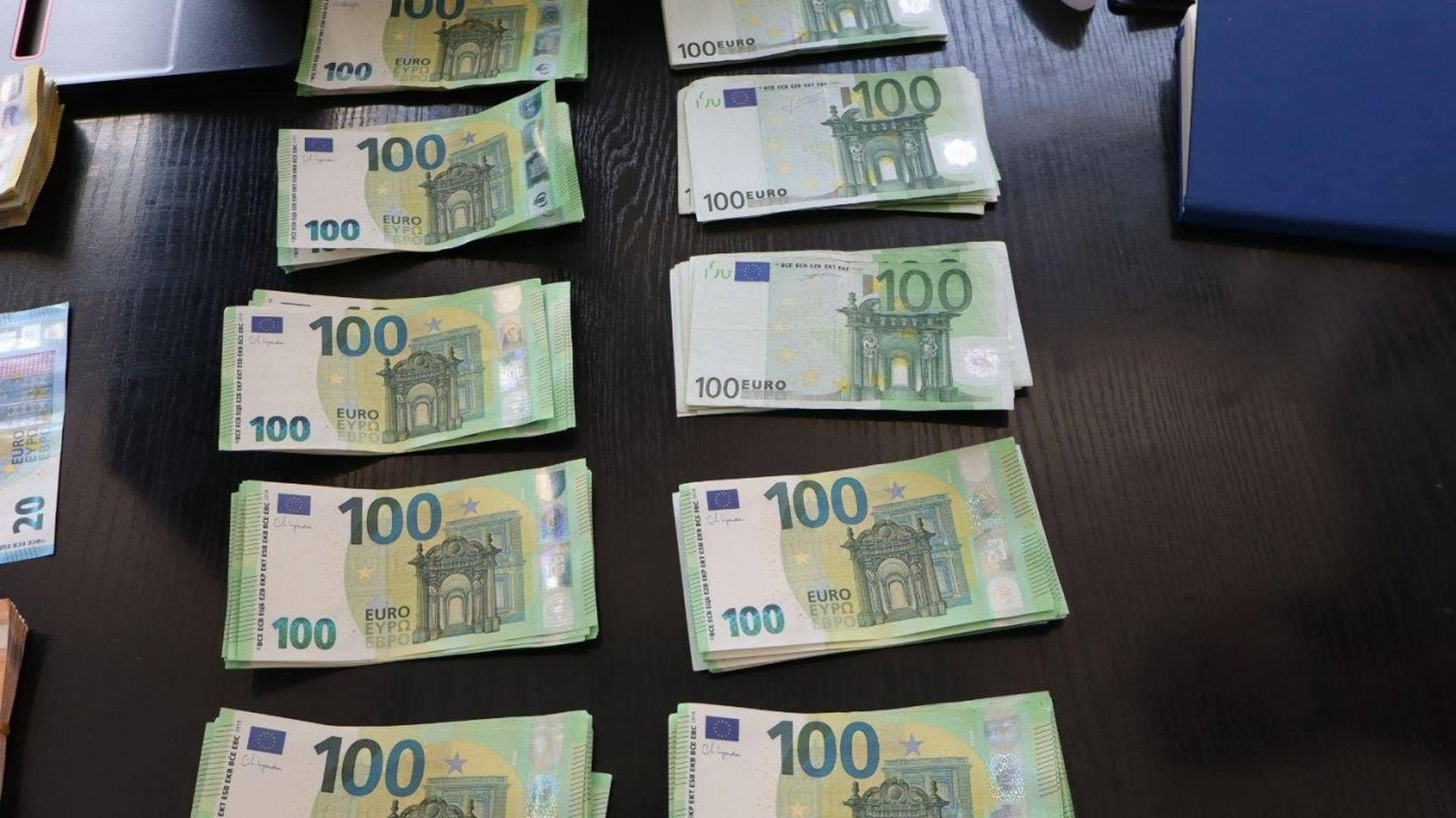 Мъжете са проследени и задържани на паркинг на голяма търговска верига. Изтеглените в брой пари са били натъпкани в раници.