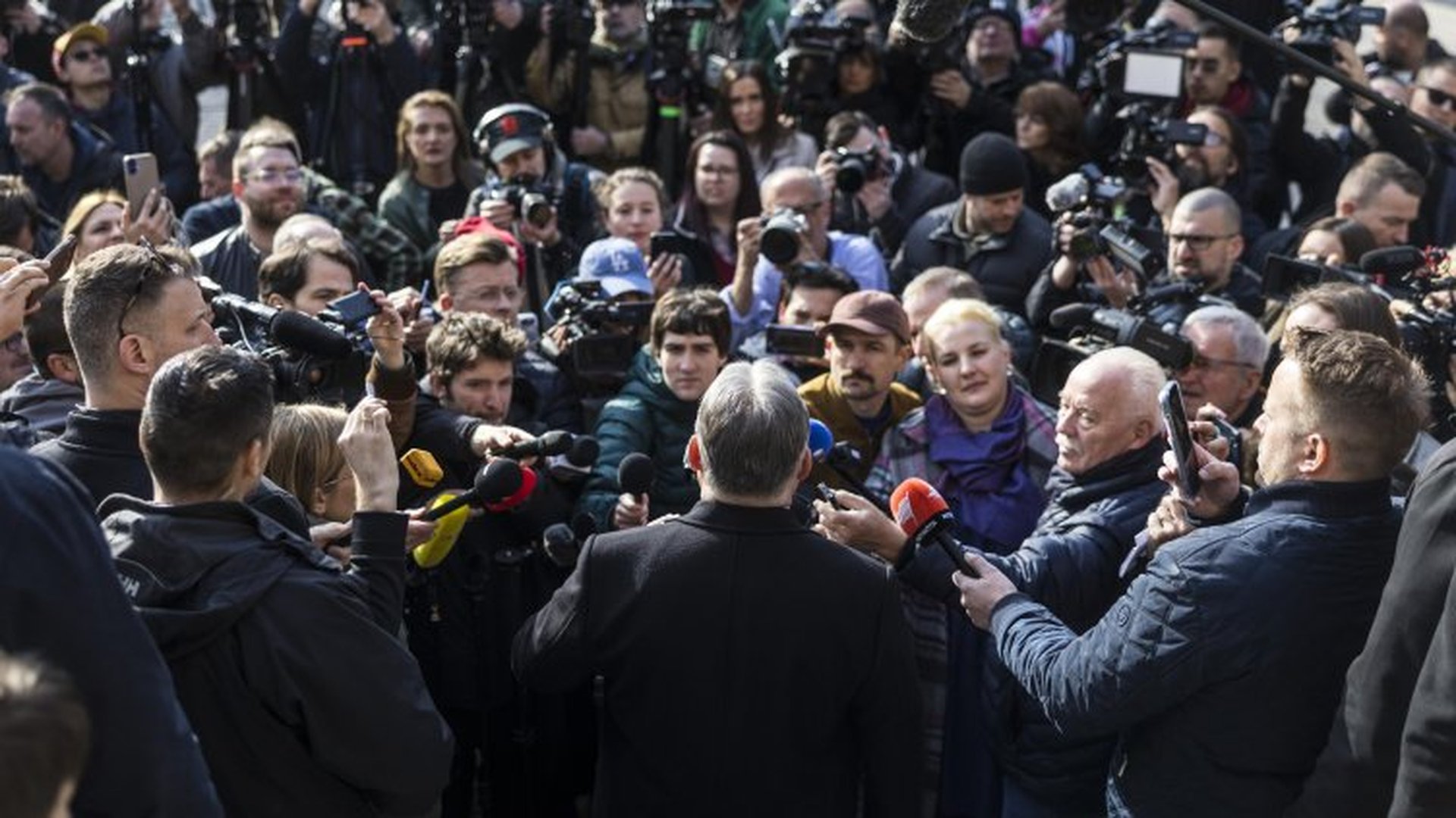 Малко след 21:00 ч. Виктор Орбан пристигна в "Балната" в Будапеща за изборната вечер на ФИДЕС.
