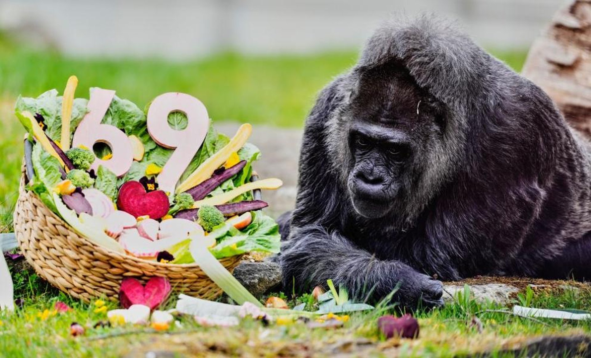 Fatou, the world’s oldest female gorilla, celebrated her 69th birthday at Berlin Zoo with a basket full of edible treats. pic.twitter.com/W0c69IvS98