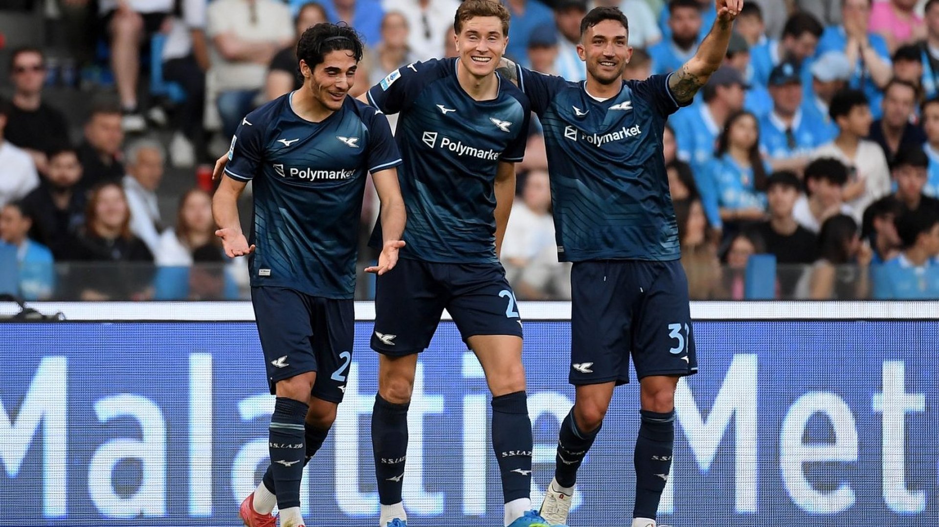 Лацио се наложи с 2:0 като гост над Наполи в 33-ия кръг на Серия А, като нанесе сериозен удар по амбициите на неаполитанците да спечелят титлата. Те изостават на 12 точки от върха, където е Интер, а още в следващия кръг „нерадзурите“ от Милано може да празнуват „скудетото“. Интер има 78 точки, след като снощи отнесе Каляри с 3:0, а Наполи е с 66.