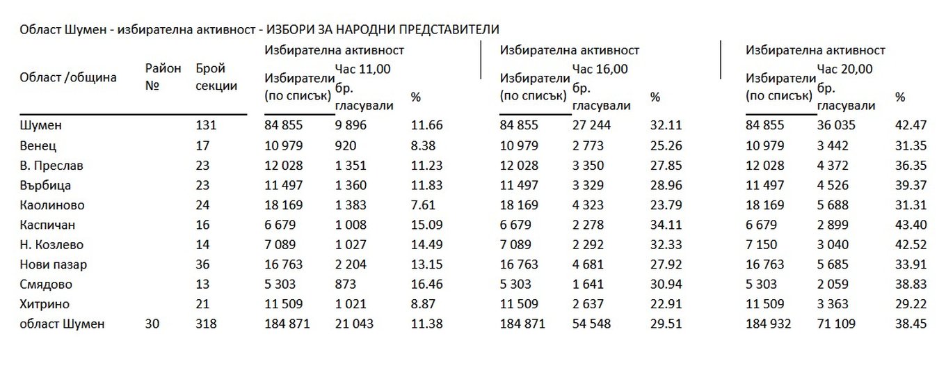 Изборният ден в Шуменска област приключи. Районната избирателка комисия обяви края му в 20,30 часа.