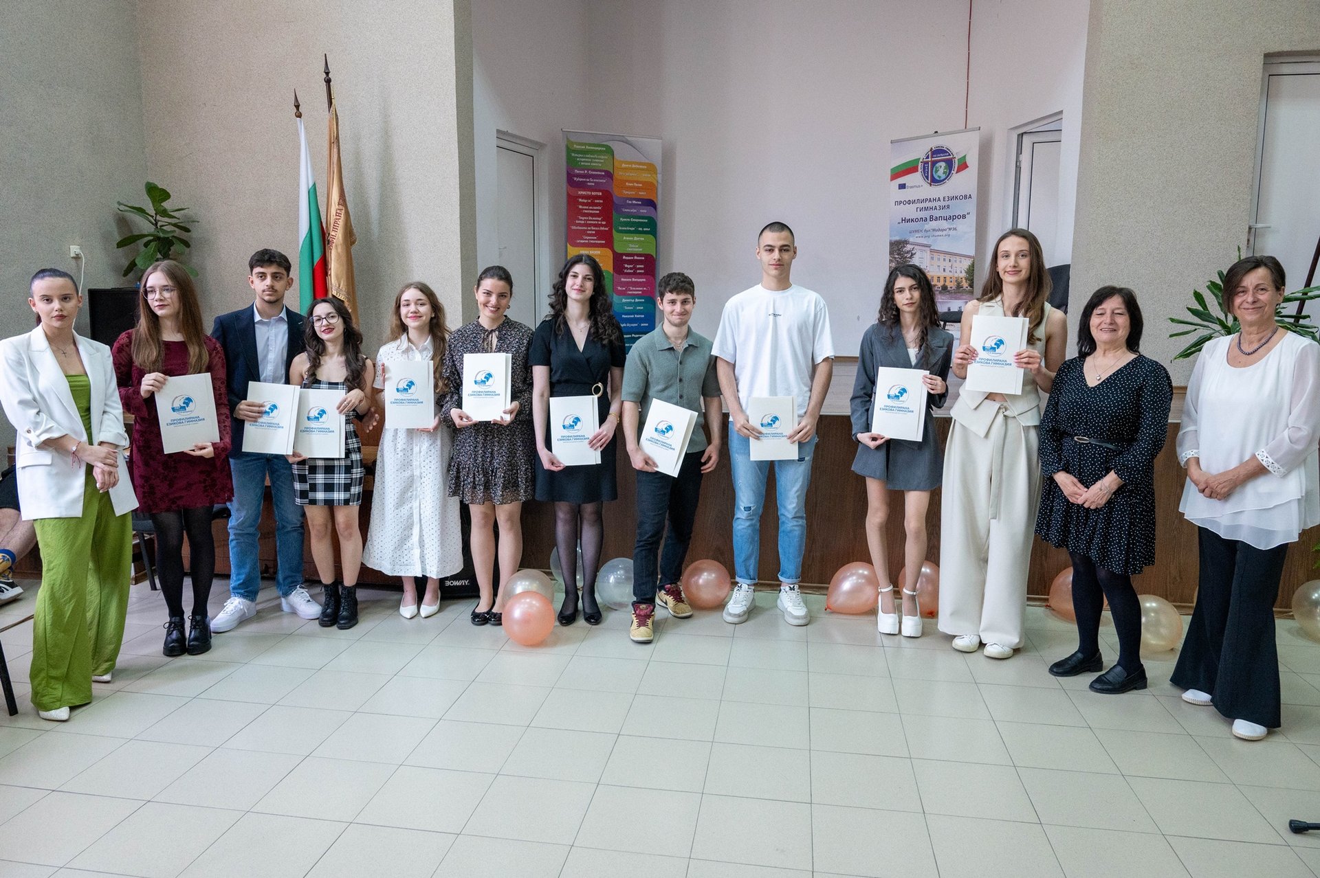 16 зрелостници от ПЕГ „Никола Й. Вапцаров“ получиха своите немски езикови дипломи DSD II днес. Официалната церемония се състоя в Актовата залата на училището, като дипломите бяха връчени от Сибиле Шабанска – консултант и координатор за немски език към Централното бюро за училищно образование в чужбина (ZfA) на Федерална република Германия.