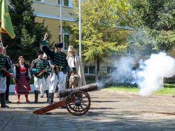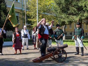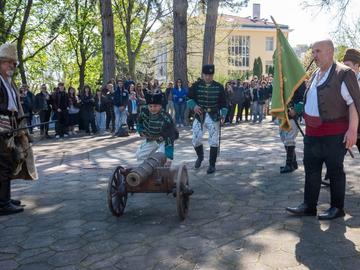 Кулминацията на честването настъпи в двора на гимназията, където бе представена жива картина с участието на шуменския родолюбив комитет „Крум Страшний“. Силен емоционален заряд предизвика символичният гръм на черешовото топче, който върна присъстващите към духа на Априлското въстание и героичната борба за свобода.