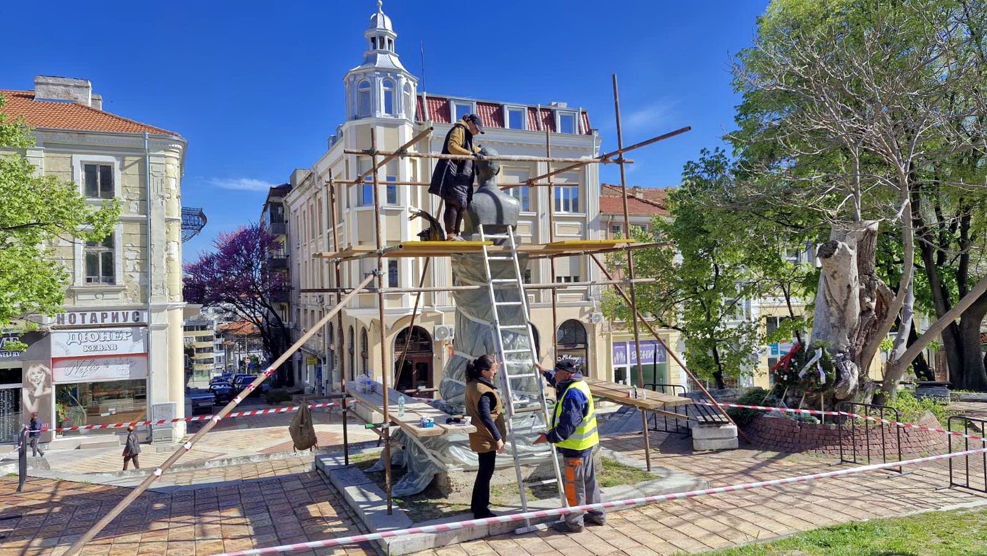 Паметникът, който е изработен от бронзова сплав, вече е почистен механично със специализирани материали. Нанесена е специална паста за мед и медни сплави, която прониква в структурата на материала, консервира и допочиства благородната патина.