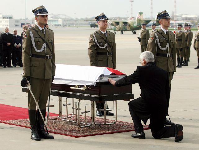 Самолетът, пренасящ тленните останки на полския президент Лех Качински от Русия, се приземи малко след 13 ч. по Гринуич на военното летище на Варшава. Семейството на загиналия полски президент, по-специално дъщеря му и братът му близнак Ярослав Качински, както и първите полски ръководители и президентът на Европейския парламент Йежи Бузек бяха вече на летището.