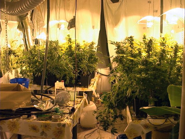 В две от стаите криминалистите открили голям брой саксии с марихуана в различен стадий на растеж. Домашната наркоградина била оборудвана с приспособления за гарантиране на качествена реколта. Капково напояване, препарати и торове осигурявали буен растеж на насажденията. Специално фолио по стените имитирало слънчева светлина. Зелена тревна маса се съхранявала в хладилник, а други количества вече изсушена марихуана били готови за пакетиране. При огледа са иззети счетоводни тетрадки, където О.К. отразявал сделките с дилъри, на които продавал дрога. Той е арестуван за 24 часа. Днес материалите по случая ще бъдат докладвани на прокурор/БГНЕС