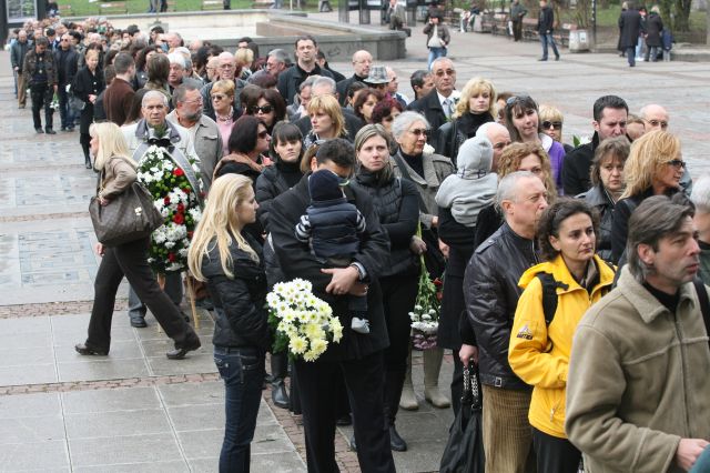 Днес стотици изпратиха актьора Андрей Баташов на поклонението в Народния театър "Иван Вазов". Сред присъстващите имаше политици, актьори, режисьори и почитатели на Баташов. За съжаление той не можа да дочака имения си ден, на който хората се изправиха пред белия ковчег на актьора. Сред присъстващите бяха председателят на Народното събрание Цецка Цачева, министърът на културата Вежди Рашидов, председателят на НДСВ Христина Христова и други членове на партията.
