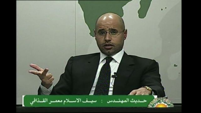 В медиите се появи и информация за бягството на Кадафи в латиноамериканска държава. Това бе опровергано от неговия син Сейф Ал Ислам, който направи пространно изявление. Либия е на ръба на гражданска война, заяви той. Сейф Ал Ислам каза, че днес ще се проведе среща с народа, за да се обсъди "ясен" план за реформи. Той определи сблъсъците като "заговор срещу страната", която се основава на племенните връзки и рискува да бъде разделена на няколко малки държави. Сейф Ал Ислам, който вече е лобирал за реформи с ограничен успех, обеща и увеличение на заплатите, като обяви съобщенията за броя на жертвите в западни медии за "преувеличени". Според него загиналите в Бенгази са 48, а зле обучените армия и полиция са допуснали грешки при потушаването на размириците. Армията е зад Кадафи, когото признава за "водач на битката в Триполи", категоричен е синът на либийския лидер, като призова борбата да се води "до последния човек". /БГНЕС