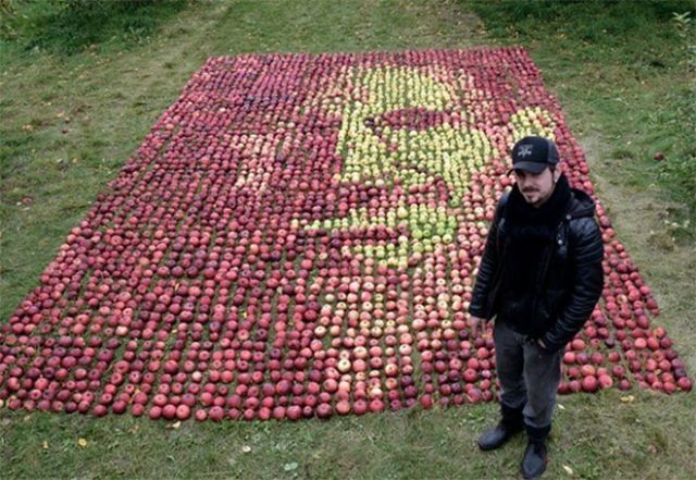 Много хора по света почувстваха необходимост по най-различен начин да уважат съоснователя на Епъл. Канадският художник Оливие Лефебър реши да представи лика на Джобс като използва именно ябълка, плодът, който вдъхнови Джобс, за да даде име на компанията. Оригиналният портрет се появи на коритцата на Тайм. За да създаде творението си авторът използва 3500 ябълки. /БГНЕС