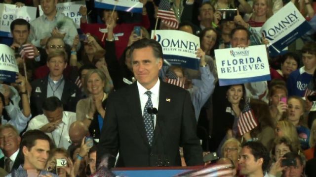 Триумфът на богаташа в "Слънчевия щат" доказа силата му в големите щати и Ромни умело използва момента, за да призове американците да отнемат Белия дом от ръцете на Барак Обама. "Г-н президент, бяхте избран да ни водите. Ала избрахте да следвате и настъпи моментът да се махнете от пътя ни", заяви бившият губернатор на фона на скандиранията: "Мит! Мит! Мит!". "Президентът Обама иска да промени из основи Америка и да я направи нещо, което ние не желаем. Искам да върна на Америка ценностите и принципите, които ни направиха надеждата на Земята", възкликна републиканецът.