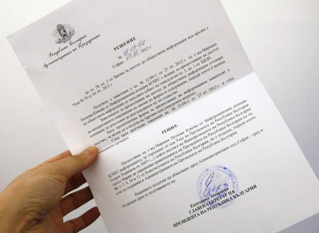 "Търсеният от БГНЕС Указ на Президента на Република България Георги Първанов от 2007 година, с който възлага на Вицепрезидента на Република България Ангел Марин да упражнява правомощията на Президента на Република България по чл. 98, т.7р9р10 и 11 от Конституцията на Република България, не е издаден, поради което и не се съхранява в Администрацията на Президента на Република България", се казва в официалното писмо администрацията на президента Росен Плевнелиев до Агенция БГНЕС. Писмото е подписано от Екатерина Захариева, главен секретар на Президента на Република България.