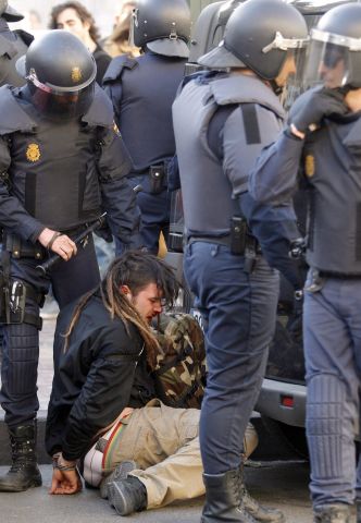 Има много задържани от полицаите, които с каски и щитове преследваха участниците в демонстрацията по съседни улици. Няколкостотин младежи се отзоваха на призивите, отправени в социалните мрежи, и се събраха пред колежа "Луис Вивес", за да протестират срещу липсата на средства, която остави без отопление няколко учебни заведения в района.