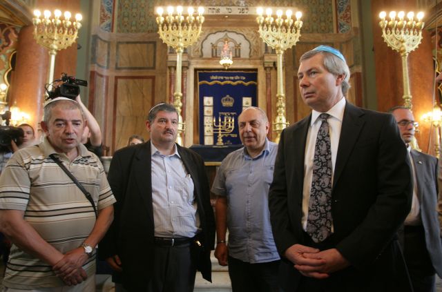 В Централната софийска синагога присъстват много членове на еврейската общност в България, млади и стари, които в традиционната за такива трагични моменти служба, почитат паметта на невинно загиналите израелци. /БГНЕС
