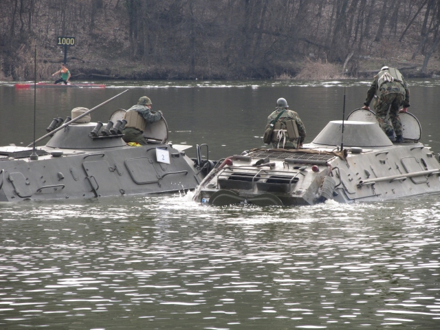 Днешните задачи пред военните бе да се премине обучение на водачи на БТР и танкове в преодоляване на водни прегради. Шофьорите трябваше да маневрират последователно на суша и във вода, както и да кормуват по определен маршрут. Интересна бе ситуацията, в която бе пресъздадена авария с една от бойните машини. Наложи се във водата да влезе още една, която да изтегли на сушата с въже на буксир повредения боен автомобил.