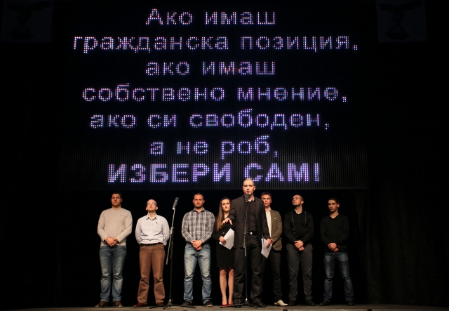С тъпани, кукерски маски и народни танци, дошли да прогонят злото от България започна събранието на протестиращите младежи в столичната спортна зала "Арена Армеец". Някои от протестиращите пристигнаха с автобуси пред столичната зала и изглежда бяха привлечени на събитието повече от личността на Стоичков, отколкото от някаква идеологическа подбуда. В залата се видяха и някои от лицата на протестиращите в София, например, обявилия на два пъти гладна стачка Чавдар Янев. А над сцената е окачен голям надпис "Движение Орлов мост. Забранено за политици." В наполовина пълната зала се развяха и три големи стари български бойни знамена. Кулминацията на продължилата близо 20 минути фолклорна програма бе в изпълнението на " Излял е Дельо Хайдутин" от космическия глас на България Валя Балканска.