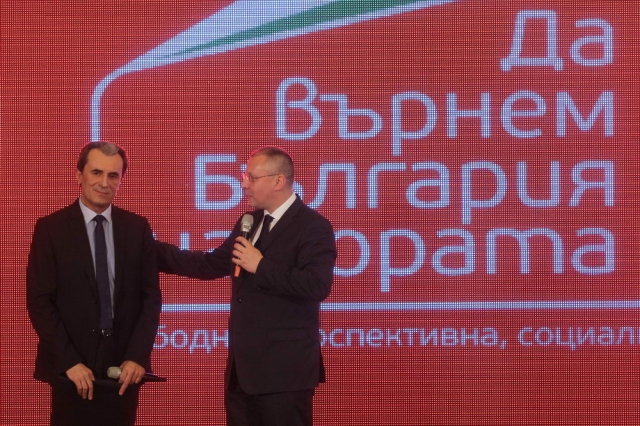 Затова представяме днешната си управленска програма. Предстоящите избори не са обичайни, те са съдбовни за България. Трябва да изберем пътя на развитие на страната. Има две прости и ясни алтернативи: или управление на ГЕРБ с премиер Бойко Борисов, с министър на вътрешните работи Цветан Цветанов или програмно правителство, начело с Пламен Орешарски с широка гражданска подкрепа, което да даде перспектива, икономически растеж, социална сигурност и перспектива за България. КБ, БСП, всеки един наш член и симпатизант, отиваме в тази битка с кауза и тя е формулирана в нашето предизборно послание - да върнем България на хората, да стане България отново свободна, перспективна и социална.