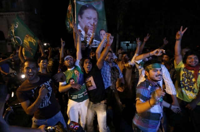 В главната квартира на оглавяваната от него политическа сила – Пакистанска мюсюлманска лига (Наваз) в Лахор Шариф произнесе реч пред тържествуващо множество, скандиращо "Наваз Шариф – министър-председател!". Според неокончателните резултати ПМЛ-Н си е осигурила засега 172 депутатски места. "Призовавам всички политически партии да седнат край масата за преговори, за да решим проблемите на страната", подчерта Шариф.
